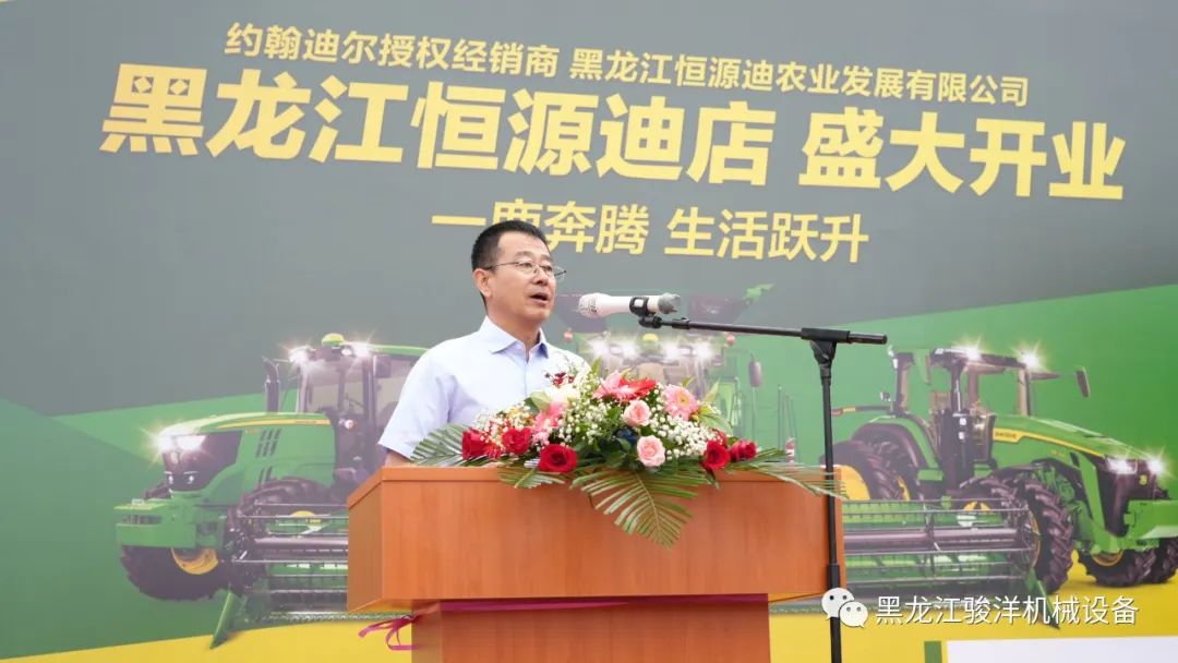 約翰迪爾亞太區銷售市場部中國銷售總經理李偉對黑龍江恒源迪農業的加盟表示熱烈的祝賀和由衷的感謝(下圖)。他表示,作為一家專注于農業領域的全球500強的公司,迪爾致力于打造有影響力的現代農機企業,為農業的可持續發展貢獻力量。黑龍江是我國的農業大省,齊齊哈爾及周邊也是農業和農機的大市場,迪爾將與恒源迪農業一起深度合作,將約翰迪爾產品更好更快地推向本地市場,不斷提高當地農機發展水平,實現當地農機的可持續發展。
